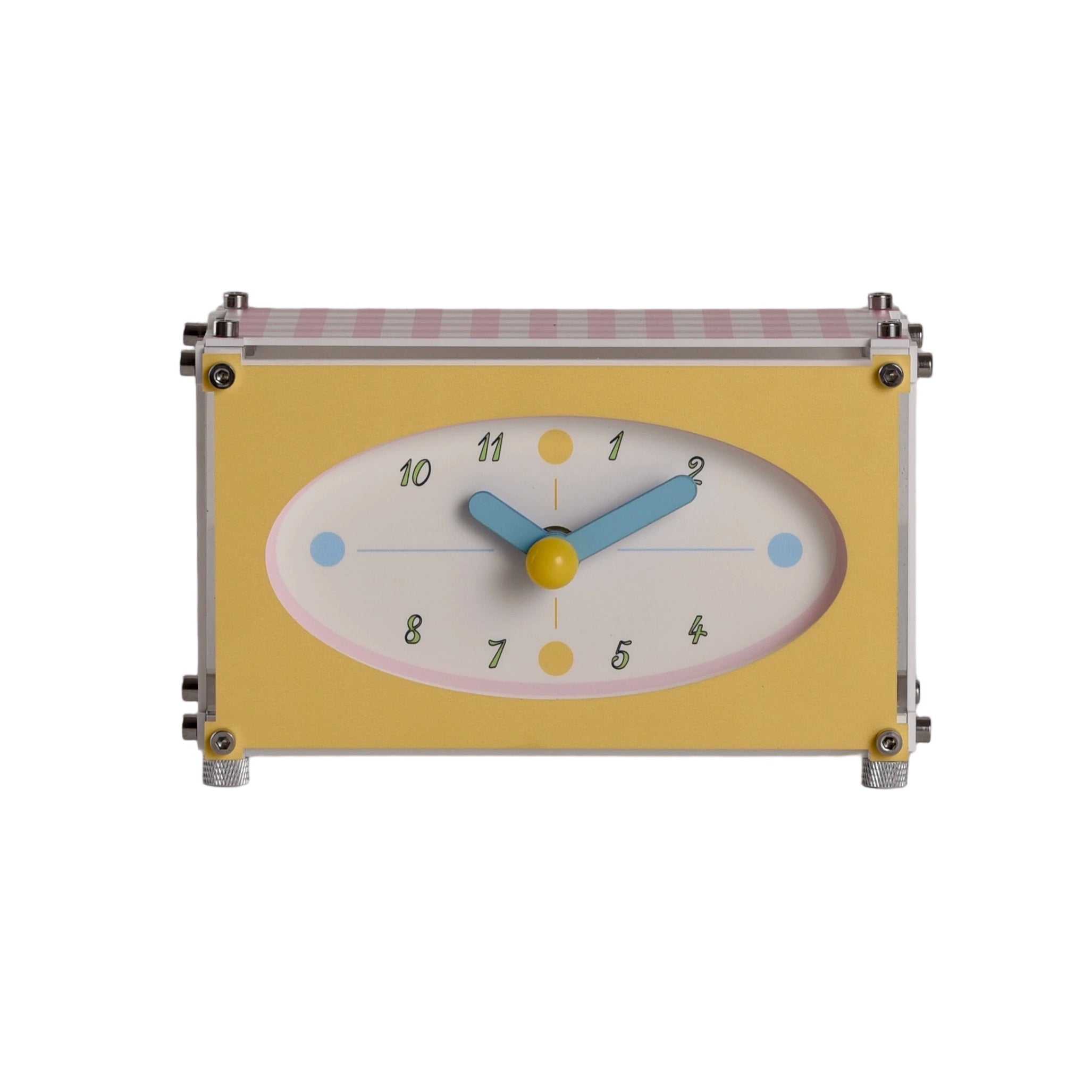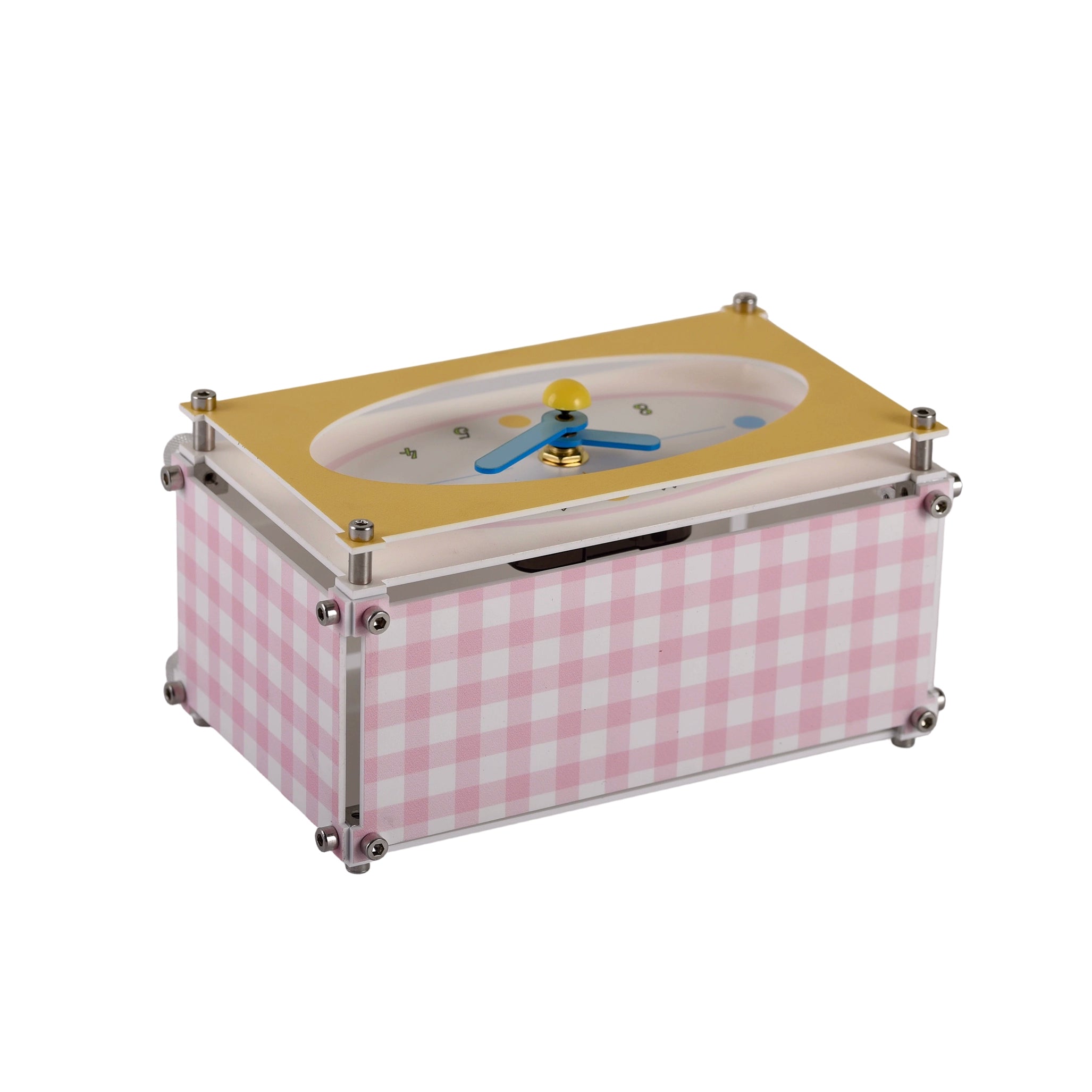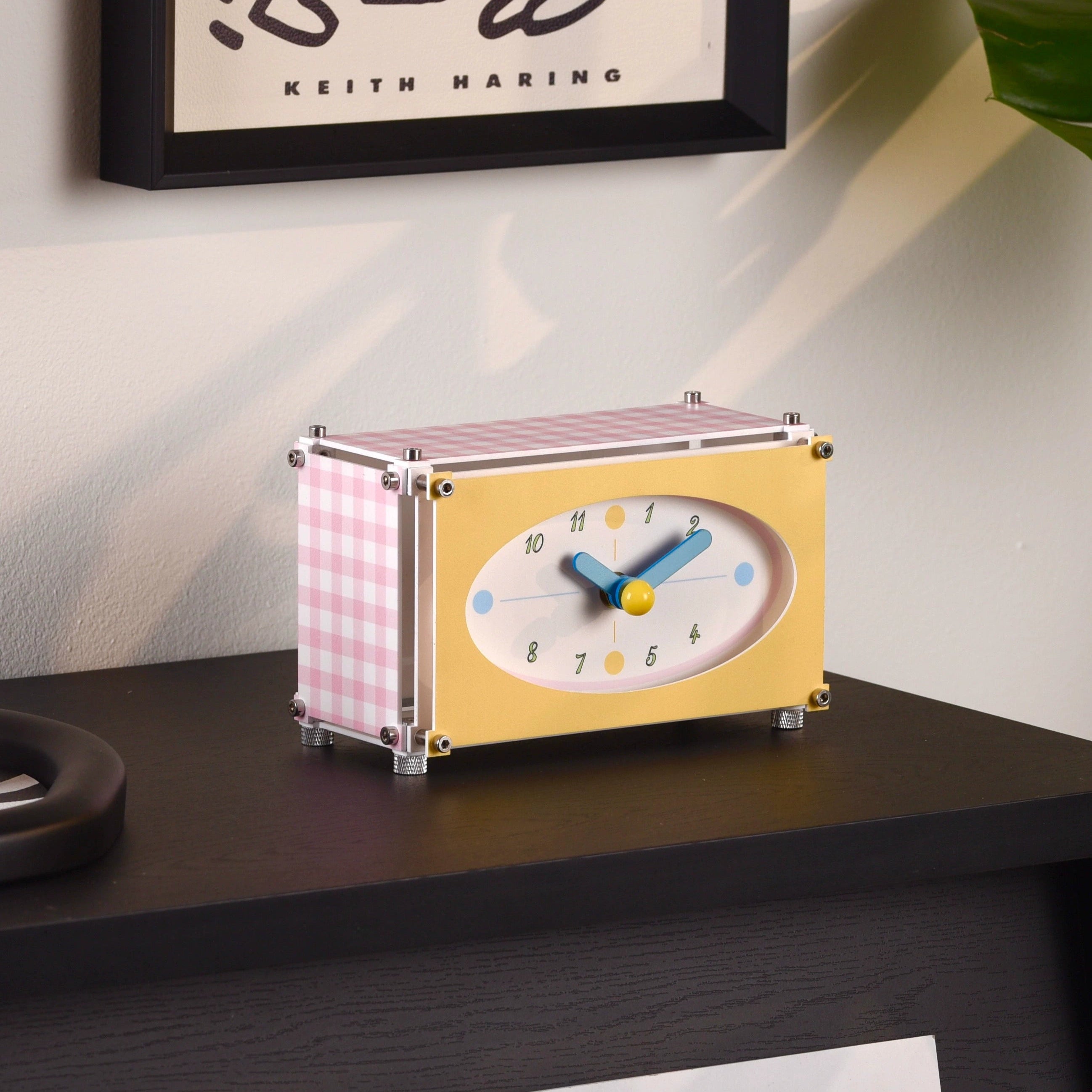 Add a playful accent to your space with this compact check-pattern desk clock. Designed with a soft graphic face and pastel tones, this small table clock brings a lighthearted charm to bedside tables, shelves, or work desks.