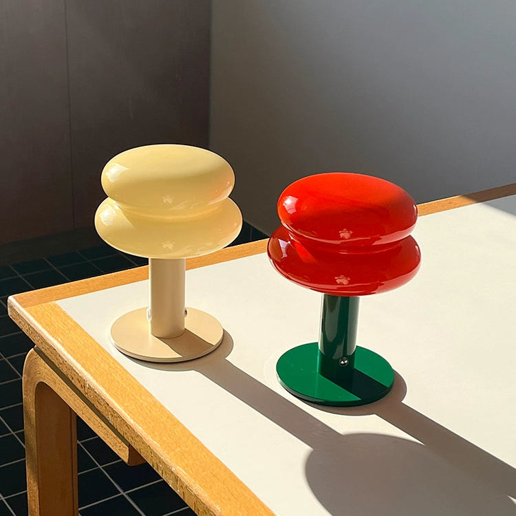 Add a bold pop of color and character to your space with the Playful Glass Double Donut Lamp. Designed with a stacked double-ring glass shade and a glossy metal pedestal, this lamp brings a perfect mix of retro charm and modern playfulness to any room.