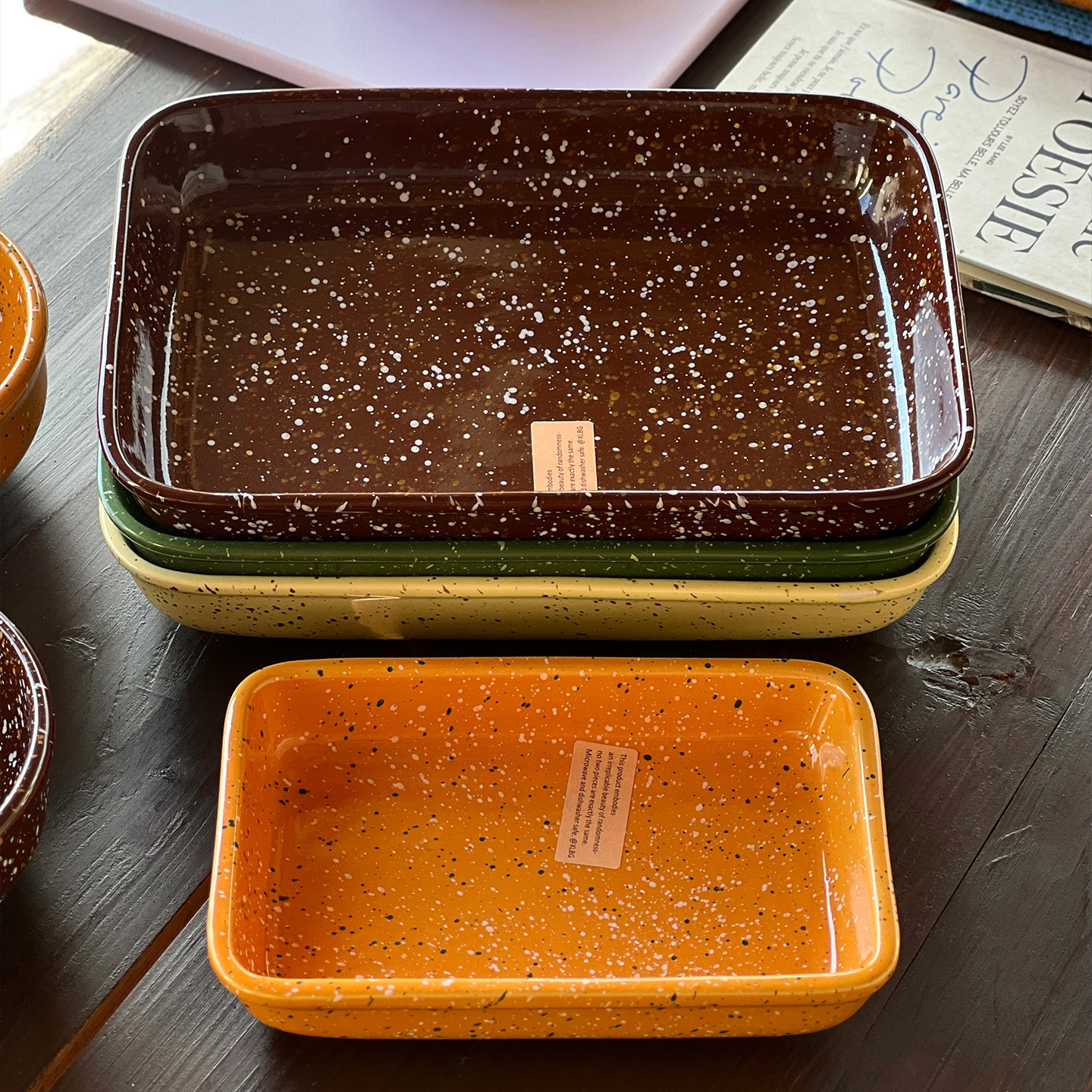 Add a playful splash of color to your table with the Retro Splatter Ceramic Plate. Each plate is handmade with a unique speckled glaze—no two pieces are ever the same. The soft curves, warm ceramic texture, and imperfect artisanal shape bring a charming, vintage–inspired character to your dining space.