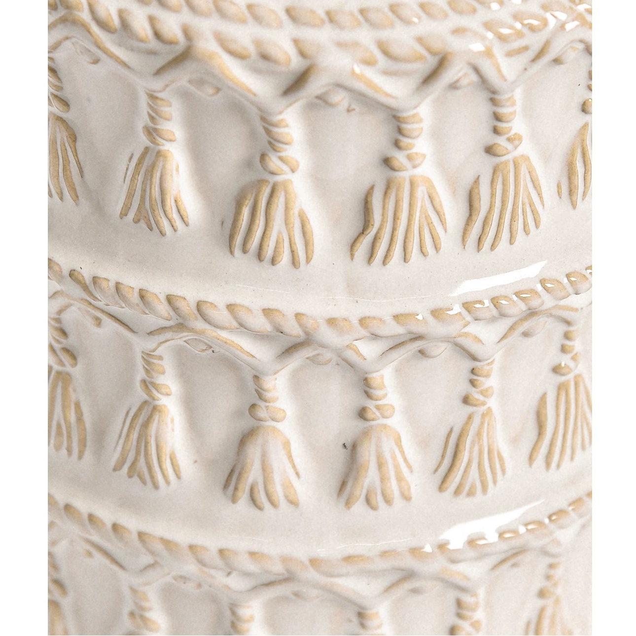 Elevate your space with this vintage-inspired ceramic vase featuring handcrafted tassel-style embossed detailing. Made from high-quality stoneware with a matte–gloss mixed finish, it brings character and warmth to living rooms, bedrooms, entryways, and styled shelves.
